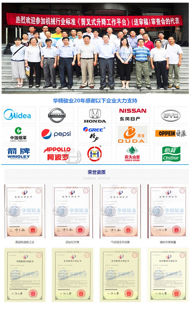 企業(yè) 輸送了高品質(zhì)的液壓升降作業(yè)平臺(tái)。為恒大地產(chǎn)、廣州白云國(guó) 際會(huì)展中心、廣東現(xiàn)代 國(guó)際展覽